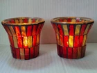 This set of 2 red and gold glass mosaic candle holders measure approximately 3" x 3". The vibrant red and gold color scheme adds a touch of elegance to any home decor, while the set design offers a coordinated and stylish look for your space. Includes two flameless tea lights. Thank you for shopping with Covington Collections!