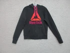 Reebok Sweater Medium Adult Black Hoodie Full Zip Pockets Spell Out Logo Womens