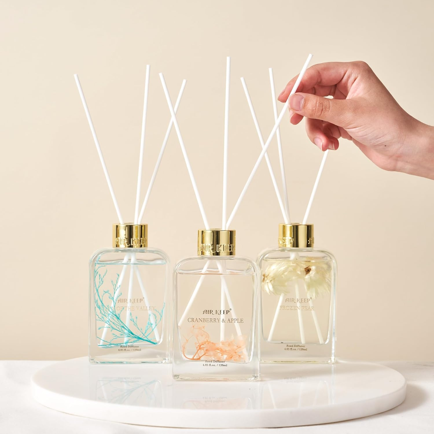 Reed Diffuser Set for Bathroom Air Fresheners,Frozen Pear/Cranberry&Apple/Lily of the Valley Oil Diffuser with 24 Sticks, 4.06 Ozx3 Home Fragrance Reed Diffuser for Bathroom & Shelf Decor 【3-Pack Reed Diffuser Set】:Enter into a world of fragrance with our Frozen Pear, Cranberry & Apple, and Lily of the Valley scented reed diffuser trio. This reed diffuser set allows you to experience three enchanting scents simultaneously, perfect for those who love variety in their home ambiance. 【Elegant Home Decor】: The sleek and elegant design of the Airkeep reed diffuser with diffuser sticks adds a touch of elegance to any space, making them perfect for home decor, living room decor, bathroom decor, and even vanity decor. 【Air Freshener】:Add fragrance in your space with fruity and floral fragrance to eliminate odors. Place it in the bedroom, living room, bathroom, kitchen, hallway, and office to instantly freshen the air and add décor. 【Easy Scent Control And Long-Lasting Fragrance】:High quality materials make our products can emit long lasting fragrance. You can choose to add or remove the number of reed sticks to match your taste. It takes 1 or 2 days for the fabric sticks to soak in the scent. When the fragrance weakens, turn the reed sticks upside down or replace them with new ones. 【Perfect gift idea】:It is beautifully packaged in good condition. The elegant glass bottle combined with the rich and sweet aroma makes the ideal gift for friends and loved ones, or a housewarming gift set. Product Description 1 Luxurious Fragrance 2 Elegant Decor 3 Air Freshener 4 Exquisite gift Unit Count 3.0 Count Capacity 4.06 ounces Number of Items 3 Power Source Manual Operation Color White, Pink, Orange Special Feature Long Lasting Aroma Material Stainless Steel, Glass Item Weight 2.66 pounds Shape Rectangular Coverage Bathroom size Recommended Uses For Product Home Auto Shutoff No Material Type Free No Electronic Components or Skin Irritants Runtime 14 hours Scent Frozen Pear/Cranberry&Apple/Lily of the Valley Product Dimensions 9.84"L x 5.9"W x 3.85"H Shipping Fast shipping is very important for us. Our standard US shipping service is FREE. Your order will be shipped within 1 business day upon full payment received. Your order will be delivered within 1-5 business days after the handling time. We are not responsible for undeliverable addresses. Returns and payment We offer a 30 days return policy from checkout winning date. We accept the following payment methods. FeedBack Your feedback very important to us, after you get your package and you are satisfied with our service please leave us positive feedback If you have any problem with your order / any questions please before leave any type of feedback For any questions, using eBay contact system Please visit our eBay store to check out other items for sale! Thank you for shopping at our store.