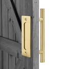 Same day business shipping. Will be professionally in new box! Thank you so much for your interest. If you have any questions, please feel free to ask. Elevate the functionality and aesthetics of your barn door with the Reliabilt Pull and Flush Barn Door Handle Set. Each handle set brings a touch of sophistication with its soft gold finish and sleek 11.5-inch height and length, ensuring a comfortable grip and easy operation. Crafted from durable metal, these handles are built to last, making them a perfect choice for your home improvement project. The package includes two handlesets, both featuring a satin finish that complements a variety of door styles and colors. Designed for ease of use and installation, these handles are suitable for any barn door setting, blending seamlessly with your home's unique charm. Add a refined touch to your door with this reliable and stylish hardware set.