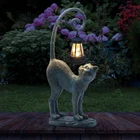 Compact Size: Please note that this Solar cat statue is not a large sculpture. Its compact size is perfect for accentuating your space without overwhelming it. (15.3" x 7.3" x 3.5“ ) Safe and Non-Toxic: Crafted with your safety in mind, this garden sculptures & statues is made from high-quality resin materials that are safe and non-toxic for both indoor and outdoor use. And the garden statues is built to withstand the elements, ensuring long-lasting beauty for your space. Charming Handcrafted Design: This cat statue captures the essence of a playful cat, complete with a lifelike expression and an intricately designed tail that holds a beautifully crafted solar lantern. Solar-Powered Lantern: The solar lantern automatically charges during the day and emits a warm, inviting glow in the evening, creating a magical ambiance in your chosen location.No wiring or electricity is required. Simply place the statue in a sunny spot, and it will light up your area after dark. Versatile Placement: Suitable for a variety of indoor and outdoor scenes, this cat outdoor decoration can be a charming addition to your garden, patio, living room, or any space you choose. Perfect Gift: This solar cat statue makes a thoughtful gift for cat lovers, garden enthusiasts, or anyone who appreciates unique and charming decor.