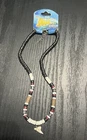 From Myrtle Beach, this unique necklace features a beautiful pendant made of resin with a shark tooth design. The beads add a touch of style to this piece, making it perfect for beach lovers and those who appreciate sea life. The necklace comes with a tag that guarantees its authenticity and quality. It is perfect for anyone who loves surfer-style accessories or wants to add a unique touch to their wardrobe. The necklace is versatile enough to be worn with any outfit and is sure to make a statement.