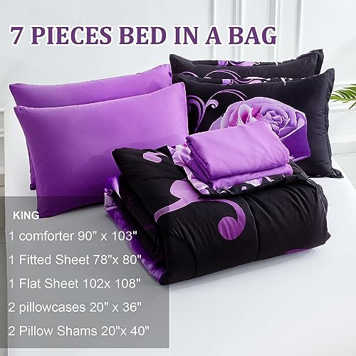 Return Policy Fast Delivery Trusted seller Purple Comforter Set King, Reversible Valentine's Day Purple Rose 7 Pieces Bed in a Bag, Lightweight Soft Microfiber Bedding Sets with Flat Sheet, Fitted Sheet, Pillowcases & Shams Product Description [Special Purple Rose Pattern] 3D purple rose 7 Pieces comforter set uses a black background with a purple rose pattern to form a noble, elegant and fashionable style. If you are considering a warm and beautiful comforter to decorate your bedroom on valentine's day, then you must not miss our comforter. [7 Pieces Bed in a Bag] Purple rose bed in a bag king with 1 comforter 103" x 90" + 2 pillowcases 20" x 40"+1 Fitted Sheet 70"x 80"x14"+1 Flat Sheet 102"x 108"+2 Pillow Shams 20"x 36".The fitted sheet is 14 inches Pocket, fits mattresses up to 14". [Soft Microfiber] This romantic valentine's rose comforter set adopt high quality lightweight microfiber fabric, fluffy, soft, providing a delicate touch to your skin, sleeping on it allows you to enjoy the feeling of being in the clouds, providing you all-year round healthier sleep quality. [Exquisite Workmanship] The rose comforter bedding set adopts high density stitiching to prevent the filling from moving or leaking out. In addition, We use the whole piece of ployester as the filling of comforter, it is more warm and breathable than traditional filling. The fabric will not tear even if machine wash many times. [Easy care] Machine wash cold on gentle cycle, tumble dry on low heat, do not bleach. Because of the vacuum package, you can tap it gently while baking it in the sun for a few hours to make it fluffy again. Shipping Returns Payment Shipping Shipping is FREE to all addresses other than APO/PO boxes in the lower 48 states. All our stock ships from US-based warehouses. Shipped via USPS or UPS (depending on location and package weight) Unless stated otherwise, all orders will ship within 24-72 hours of your payment being processed. Check our feedback to see the great reviews of FAST shipping we offer. Returns Seller does not accept returns Payment We currently accept payment via eBay managed payments only. Once payment is cleared, we will dispatch your shipment within 1-3 business days. Please refer to the "Shipping" tab for more information regarding shipping speed to your destination.