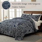 Return Policy Fast Delivery Trusted seller Reversible Paisley Quilts Full Queen Size, Lightweight Boho Printed Bedspreads Coverlets Quilt Bedding Set with 2 Pillow Shams for All Seasons, Navy/Bone Product Description Fresh and fine touch: With exquisite stitching technology and well-made microfiber material, this quilt set will give you the most comfortable skin touch, excellent softness and comfort without any pilling, fading or shrinkage Color and size: The queen quilt set includes 1 bedspread (96"x 92") and 2 pillowcases(20"x 26"). It also comes in an array of colors, different colors have different styles and patterns to complement any style of home Exquisite design: This quilt set is reversible with gorgeous patterns and vibrant color. Classic design with elegant pattern is printed on the front side, and the reverse side features bright solid color. The advanced digital printing technology makes the pattern much more beautiful and bright, a lovely ornament to your home decoration Versatile bedspread: Combined with practicality and beauty, this lightweight quilt set is your wonderful pick for indoor and outdoor use. It is a stylish ornament for your home decoration, a decent present for your families and friends, a cozy cover for your bed sofa loverseat couch and recliner Easy to care: Machine wash in cold water on gentle cycle, only non-chlorine bleach when needed, tumble dry on low heat. No shrinkage, no pilling, no colour fading and no unraveling after washing Shipping Returns Payment Shipping Shipping is FREE to all addresses other than APO/PO boxes in the lower 48 states. All our stock ships from US-based warehouses. Shipped via USPS or UPS (depending on location and package weight) Unless stated otherwise, all orders will ship within 24-72 hours of your payment being processed. Check our feedback to see the great reviews of FAST shipping we offer. Returns Seller does not accept returns Payment We currently accept payment via eBay managed payments only. Once payment is cleared, we will dispatch your shipment within 1-3 business days. Please refer to the "Shipping" tab for more information regarding shipping speed to your destination.