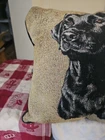 Character: black lab Shape: Rectangle Features: tapestry Character Family: dogs Size: 15 x 13 in Origin: unknown Style: Decorative Pattern: Abstract Material: multiple Color: Multicolor Department: Adults Item Width: 15 in Theme: Tapestry, Dogs Subject: Black Labrador Room: Any Room MPN: na Brand: Robert T May Country/Region of Manufacture: Unknown Closure Type: n/a Type: Throw Pillow