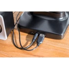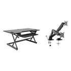 The Black DADR-46 Standing Desk Converter Bundle is the perfect way to get your ergonomic workstation started. It comes with a Rocelco R DADRB-46 Sit to Stand Desk Riser and a Rocelco MA2 Premium Pneumatic Dual Monitor Mount. The DADR-46 Height Adjustable Sit to Standing Desk Riser and Converter offers the versatility you need to get through your work day. Now you can sit part of the day or stand to take advantage of all the health benefits that come with standing and moving around. With the DADR-46, you and your associates will become healthier and more productive. It fits over your current desk with no need to buy additional furniture. With its spacious 45.75" W x 23.75" D work surface, you can hold up to 3 large monitors, a laptop, and more. It also includes an retractable keyboard tray that measures 25.75" W x 11.25" D that is an ergonomic 4.5" below the desktop. EVR Enhanced Vertical Range rises up to 20" and down to 5", to optimize the ergonomic work position for people of all heights. Straight up and down motion minimizes required depth (23"). Gas piston assist allows you to easily raise and lower up to 45lbs. Grommet hole allows you to route cables or add an optional single, double or triple monitor arm such as the Rocelco DM1, DM2 or DM3. It works with your existing desk or create a complete standing desk with the optional Deluxe Floor Stand (DADR-FS). Fully assembled and ready to go! Includes the R MA2 – Double monitor Arm with GPCMA (Gas Piston Counterbalance Motion Assist) allows effortless independent screen adjustment for comfortable viewing. Fits two 13"-27” screens up to 14.3 lbs each. Includes USB and multimedia ports to conveniently connect and charge your devices. Quick installation and adjustment - no tools required. Cable channels provide a hassle-free way to run your cables and maintain a tidy uncluttered workspace. Includes two mounting systems to attach to your desk - clamp and grommet. Features: STANDING DESK BUNDLE: Includes a 46" standing desk converter (R DADRB-46) and a Premium Pneumatic Dual Monitor Arm (R MA2). EXTRA LARGE WORK SURFACE: 45.75" W by 23.25" D desktop holds up to 3 medium sized monitors or 2 large monitors and the 25.75" W by 11.25" D retractable keyboard tray will hold a laptop if needed. RETRACTABLE ERGONOMIC KEYBOARD TRAY: Keyboard tray extends & retracts while keeping a 4.5" spacing between keyboard tray and desktop which helps keep arms and wrists in an ergonomic position to prevent neck and back strain while sitting or standing QUICK, EASY AND STABLE HEIGHT ADJUSTMENT: Sturdy metal frame with easy-grip side handle & gas piston assist, can raise and lower up to 45 lbs, height adjustment from 5" up to 20" above desktop to optimize the ergonomic work position. INCUDES DUAL MONITOR MOUNT: DM2 monitor mount comes with a grommet hole mounting application which will free up more space on your desk, the double articulated arms makes it easy to position 13"-27" flat panel monitors exactly where you want them MINIMAL ASSEMBLY REQUIRED: Monitor mount can be assembled in minutes, attached to the desk riser and you're ready to go. Specifications: Desk Dimensions: 46"W x 23.1"D x 5"H