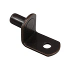 The L-Shaped shelf support pegs have an antique copper finish. L- shaped shelf pins fit into any predrilled (1/4") holes. Perfect for shelf support in book shelves, cabinets or other shelving units. Antique Copper Finish 1/4 in Bracket style shelf support 25 Per bag Easy to install. Use your hand to press the shelf pin into the cabinet hole.