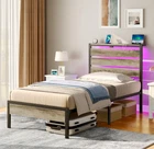 Rolanstar Bed Frame Twin Size with USB Charging Station, LED Bed Frame with Wood Storage Headboard, Light Grey Metal Platform Bed with Under Bed Storage, No Box Spring Needed, Noise Free Size Twin Product Dimensions 80.5"L x 38.4"W x 43.3"H Special Feature Storage Headboard, LED strips, Charging Station Color Light Grey Finish Type Powder Coated Material Metal Style Modern Maximum Weight Recommendation 350 Pounds Item Weight 17.3 Kilograms About this item Headboard Storage Shelves: Rolanstar bed frame headboard shelves offer a convenient storage solution, keeping essentials within easy reach and providing an additional space for decorating your cherished home Convenient Charging Station: The Rolanstar metal platform bed features 2 USB ports and 1 Type-C port, providing convenient charging options for your cell phone and allowing the use of a book light while you relax in bed Multi-functional LED Bed Frame: Experience sophistication with the Rolanstar metal bed frame, heightened by vibrant multi-colored RGB LED light strips. Utilize the mobile app to explore a spectrum of over 60,000 colors, and customize brightness, color, mode, and timer settings according to your preferences. Enhance the overall experience by syncing the LED lights with music, creating a romantic and dynamic party atmosphere Under-Bed Storage: The thoughtfully designed 12.4-inch under-bed storage maximizes space, providing ample room for belongings and effortlessly contributing to a neat and organized bedroom Sturdy Bed Frame: With 13 secure heavy-duty metal slats, this platform bed ensures stability, eliminating any wobbling or shifting. Supported by nine sturdy legs, it facilitates even weight distribution, preventing mattress sagging for an improved sleep experience and refreshed wake-ups. Remarkably sturdy, with a weight capacity of 700 pounds . We offer FREE shipping on all orders! . We ship within Five business days of payment, usually sooner. . We use a selection of shipping services such as UPS, FedEx, USPS etc. . We only ship to the lower 48 states, no APO/FPO addresses or PO Boxes allowed. . Local pickups and combined shipping options are not provided at this time. . You can return a product for up to 30 days from the date you purchased it. . Any product you return must be in the same condition you received it and in the original packaging. Please keep the receipt. . Your satisfaction is a wonderful reward for our efforts. Please assist us by leaving a positive review if you feel pleased with our service. . In the event that you encounter any difficulties related to your order, please do not hesitate to reach out to us directly through the Messaging system on the Ebay platform. Kindly consider opening a COMPLAINT or a RETURN REQUEST as a last resort, only after all other possible measures have been attempted and we have been unable to provide you with assistance. . We will get in touch with you within 24 hours and make every effort to ensure your satisfaction. . Please rest assured of our service quality.