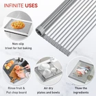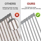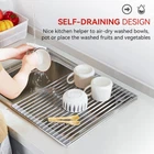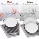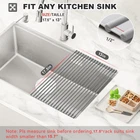 Upgraded Non-slip & Heat Resistant Full FDA Food Grade Silicone Wrapped Dish Drying Rack: Much sturdier than the stainless steel sink drying rack and will never slide around like a metal one without a coating! The silicone roll up dish drying rack is BPA Free for safe use on fruits, veggies, cake, etc. So the dish racks for kitchen counter can be also used as a trivet to place things that take directly out of the oven! Heat resistant 400°F (204°C) so use it to protect countertops from hot pans. (The width of the sink must be less than 15.2 inches if choose 17.5" dish rack.) Multifunctional W/ Perfect Size & Foldable Design: roll up dish drying rack is available in 4 sizes, suitable for most kitchen sinks and counter. This sink drying rack measures 17.5" x 13". Full silicone wrapped steel kitchen sink mats can be rolled up to any desired width. NOTE - Please measure your sink before choose for better kitchen organization. Heavier & Anti-rust : over the sink dish drying rack has good weight to it and a great non slip silicone grip to keep it in place and to prevent items from sliding off of it. Also, the dish drying rack is sturdy enough to hold large serving bowls and a pasta pot full of water without bending. Our dish rack over sink will never rust with the silicone surface! Welcome to compare. Space Saving & Easy to Clean: Multipurpose roll up drying rack over sink does not require any assembly, just put it flat over the sink and increase much more counter space than traditional dish drainer easily! The silicone surface just need a rag to wipe cleaning. A great addition as kitchen sink organizer and apartment must haves. It will be a warm gift for new home. All-In-One Multi-purpose Over The Sink Drying Rack: Multiple-use kitchen essential - dish drying rack, trivet, bottle drying rack, heat insulation mat, colander, prep area, drain some over-watered flower pots, etc - all in one! provide lifetime warranty for this product. Welcome to contact us if have any needs.