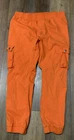 Upgrade your streetwear game with these Roma Studio Premium Collection cargo joggers. The colorful orange design, featuring a solid pattern and tapered leg style, is perfect for any hip hop-inspired outfit. The pull-on closure and elastic waist make them comfortable for casual wear, parties, or travel. Made from a blend of spandex, ramie, and cotton, these pants are easy to care for and machine washable. The mid-rise fit and cargo style add to the overall look. These pants come in a 3XL size with a waist size of 36 inches and an inseam of 28 inches. Get ready to turn heads with these stylish and comfortable pants.
