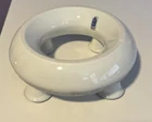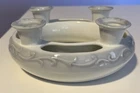 R.R. Roman Blue & White Porcelain Candle Holder Ring 4 Tapers w/Flower Trough - 6" Diameter Please review all pictures carefully as they are part of the description. Questions are welcome.