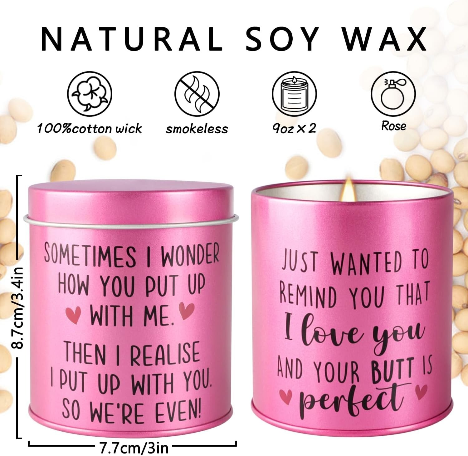 Charming Rose Scented Candle Set - 9 oz Jars (Pack of 2) for Lovebirds ‹ › ‹ › ‹ › ‹ › ‹ › ‹ › ‹ › ‹ › ‹ › ‹ › Charming Rose Scented Candle Set -9 oz Jars (Pack of 2) for Lovebirds Features: Exquisite valentines day gifts with a pleasing aroma 100% Natural Soy Scented Candles made from soy wax and pure essential oils 9oz Scented Candle with rose floral essential oils Perfect for lighting in rooms, studios, kitchens, living rooms, bathrooms, yoga studios and gyms Burns for approximately 50 hours under normal conditions Can be cleaned and used to hold small items, pens, jewelry, etc. Benefits: Delight your spouse with a pleasing aroma Ignite the flame of passion between you and your spouse Add spice to your love life Natural goodness and fragrance in the air Perfect gift for Valentine's Day, weddings, Mother's Day, birthdays, or Thanksgiving Great way to decorate your room Why choose our Charming Rose Scented Candle Set? Looking to add a touch of romance and luxury to your space? Our Charming Rose Scented Candle Set is the perfect choice. Made from 100% natural soy wax and pure essential oils, these candles will fill your room with a delightful rose fragrance that is perfect for setting the mood for lovebirds. With a burn time of approximately 50 hours, these candles are long-lasting and perfect for any occasion. Whether it's Valentine's Day, a wedding, Mother's Day, a birthday, or Thanksgiving, these candles make a thoughtful and beautiful gift that will be appreciated by your loved ones. Don't miss out on the opportunity to enhance your space and create a romantic atmosphere - order your Charming Rose Scented Candle Set today! Shipping Free & Fast Shipping - We offer free shipping to most of the USA with a normal delivery time of 3-7 days. However, due to the current situation, additional delivery time (up to 3 weeks) may be required for some items. Alternative Carriers - We may use alternative carriers (e.g. USPS, FedEx, UPS, etc.) to ensure your package arrives safely and on time. Due to the use of multiple carriers, we are unable to provide a tracking number automatically. Handling Time - Orders are processed and shipped within 1-2 business days of receiving cleared payment. Shipping Restrictions - Shipping to Alaska, Hawaii, Puerto Rico, Guam, and other US territories may incur shipping charges or delivery restrictions. Please contact us before ordering, or your order can be refunded/cancelled. State Restrictions - There may be restrictions based on your state of purchase. For example, certain items may not be shipped to California due to state regulations. Contact for Tracking Updates - If you require tracking updates or have any concerns about the delivery of your order, please feel free to contact us, and we will be happy to assist you. Return 30-Day Hassle-Free Returns - We want you to be completely satisfied with your purchase. If you are not, you can return the item within 30 days of receiving it for a full refund or exchange. Easy Return Process - To start a return, simply contact us and we will provide you with a prepaid return shipping label and detailed instructions. Restocking Fee - There are no restocking fees for returns. However, the buyer is responsible for return shipping costs if the return is not due to a seller's error. Refund Processing Time - Refunds will be processed within 5 business days of receiving the returned item in its original condition. Payment We accept all major credit cards, PayPal, and Apple Pay for your convenience. Your payment information is secure and encrypted to ensure a safe and seamless transaction. Please complete your payment within 3 days of purchase to avoid any delays in shipping. Feedback Your feedback is extremely important to us. We strive to provide the best products and customer service possible. If you are satisfied with your purchase, please take a moment to leave us a positive review. If you have any concerns or issues with your order, please contact us before leaving negative feedback. We are committed to resolving any problems and ensuring your satisfaction. Contact Us If you have any questions or concerns, please feel free to reach out to our customer support team. You can contact us through the eBay messaging system. We are available Monday to Friday, 9:00 am to 5:00 pm EST, and we will do our best to respond to your inquiry within 24 hours. Thank you for supporting our small family business!