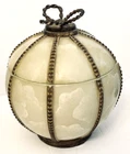 1- Romanza vanity potpourri, or trinket jar / dish with lid cover, hand painted bronze color metal rope and faux marble finish. Measurements: Diameter 4.5” Height 5” Weight 14.9 oz * Excellent condition 1 - Romanza toothbrush holder with ornate base and bronze metal rope accents. Height 5.5” Diameter 3” Weight 11 Oz 2 - Romanza lotion or soap dispensers (pumps are missing but generic pumps can be used instead or they can be used as bud vases) Height 7” Diameter 2.5” Weight each 11 oz