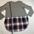 Romeo & Juliet Couture Crewneck Plaid Flannel Tunic Top Size Small 90s Preppy CONDITION: Pre-Owned. Excellent Used Condition. FLAWS/ALTERATIONS: No flaws. COLOR: Grey/White/Red/Blue SIZE: Women’s Size Small DETAILS: Crewneck Long sleeve Pull over Mixed media Sweatshirt bodice/Plaid lightweight flannel attached Faux layered look (fabric is sewn together to make 1 piece) Tunic length Slight high low hem MEASUREMENTS: Chest: 19.5" Front Length: 29" Back Length: 31.5" **All measurements are approximate and are taken flat** MATERIAL: **NO MATERIAL TAG** Bundle 2 OR MORE items to save more! Reasonable offers are welcomed! TAGS: Casual Comfy Fall Winter Maximalist Preppy Academia Boho Bohemian 90s Y2K 2000s Punk Grunge