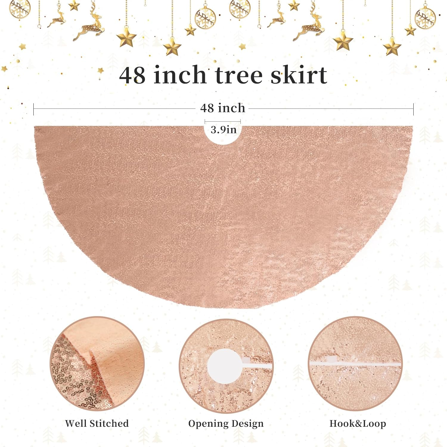 Store New Arrivals Add to Favorite View Feedback Christmas Tree Skirt - Rose Gold Sequin, 48 Inch, Indoor/Outdoor Description Item model number rose gold 48in tree skirt Closure Type Drawstring Material Satin with Sequins Color Rose Gold Pattern Solid Item Diameter 48 Inches Item Weight 7.4 ounces Size 48IN 1.Perfect Size of Rose Gold Xmas Tree Skirt: The package includes 48 inches diameter rose gold Christmas tree skirt, suitable for under 8ft trees.Keep your Christmas tree looking beautiful with this high-quality tree skirt, designed to provide the perfect finishing touch to your Chrisrmas decorations. 2.Sparkly Premium Material: Rose Gold sequin tree skirt using satin mesh fabric covered with shiny 3mm round high density sequins,it will not easy to fall off and see through, more shiny elegant and luxurious. 3.Easy to Install:There are seamed hidden 6 Pcs magic sticks on the border of christmas tree skirt, you can use them to fixed the Christmas tree skirt,easy to fixed, More convenient than ties. .And the 4inch Diameter Opening Makes the Tree Skirt Easy to Surround the Christmas Tree. 4.Suitable Size : Rose Gold Sequin Christmas tree skirt, 48 inch tree skirt, suits for most size of Christmas Trees. You can put the ornaments you like on the tree skirt for more holiday decorations.Add a touch of elegance and warmth to your festive celebrations. 5.Tree Skirt Christmas Decorations:Add a touch of glamour and sophistication to your Christmas tree with this rose gold sequin tree skirt, creating a stunning focal point that will delight your family and guests. And protect the floor from being stained by resin or others. Product Description ABOUT US We offer the best prices around on high quality products. Our E-store includes media such as books, movies, music and games while offering electronics, toys, sporting apparel, clothing, tools, general home, garden items and more. SHIPPING We are always working hard to ensure your package arrives as soon as possible. Please understand that some factors like weather, high postal traffic, and the performance of shipping companies are outside of our control. We offer free shipping to the lower 48 states and ship within 2 business days of payment, usually sooner. We do not accept P.O. Boxes. Please provide a physical address. RETURNS We offer a 30-Day Return Policy on items which you are not completely satisfied with. You have the option for a full-refund or an exchange of the item. No returns are available on items shipped outside of the USA. PAYMENT We accept PayPal. CONTACT US This page content is yet to come Please ad us to your favorite seller and visit again later Thank You
