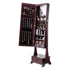 VEVOR Standing Mirror Jewelry Cabinet: Effortless Jewelry Organization This standing mirror with storage combines a jewelry organizer, full-length mirror, makeup mirror, and rear storage shelf, providing a clean and spacious area for all your needs. The standing jewelry mirror features a high-quality velvet lining, ensuring your necklaces remain scratch-free and tangle-free. The keyless design prevents lost keys while keeping your valuables secure from playful children. The storage mirror features an LED light at the top, allowing you to easily wear jewelry in the dark. The rotating earring holder ensures quick access, while the bracelet rack saves space. The recessed door handle makes it easy to open, and the door's magnetic strength is ideal for long-term use. This beautiful and durable jewelry mirror organizer enhances the aesthetic of your room while maximizing space. It's the ideal gift for your wife, mother, or girlfriend—perfect for any occasion. The full length mirror with storage is easy to use and install. The built-in storage box provides extra storage space, meeting your storage needs.