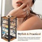 【360°Rotating Jewelry Organizer】This upgraded earring organizer features a rotating base at the bottom, allowing you to freely adjust it to the desired angle. It makes accommodating your needs effortless. Additionally, it facilitates easy retrieval and storage, making it an ideal jewelry display stand for countertops. 【Stable Swivel Base】Quality determines the product's lifespan and flexibility. For this jewelry stand, we have combined metal with solid wood to make it more durable and practical. Additionally, we've crafted the bottom swivel base out of high-quality materials, enhancing the versatility of this swivel earring holder. 【Wooden Tray & Ring Tray】The jewelry stand has a wooden tray at the top, and you can place perfume, sunglasses, lipstick and other items on these trays. And the bottom comes with a ring tray with a total of 40 ring slots to store a variety of rings and show off the original beauty of the jewelry. 【Versatile Storage & Exquisite Display】This square earring stand has two sides for storing earrings(100 slots and 100 holes), including pierced earrings, and the other two sides are necklace hooks/bracelet hooks/ring hooks. It meets almost all jewelry storage needs, and its exquisite appearance is perfect for showcasing jewelry, essentially creating a DIY earring tree. 【Easy Assembly】In just 3 steps, you can create your own exclusive earring holder for storage or display. Premium material and exquisite design infuse this jewelry rack with personality and greatly enhances the aesthetics. Product Description The video showcases the product in use. The video guides you through product setup. The video compares multiple products. The video shows the product being unpacked. Jewelry Holder Organizer by keomaisyto 360°Rotating Earring Organizer Bracelet Holder Necklace Holder Ring Holder 100 Earring Holes & 100 Slots 360 Rotating Jewelry Stand with Stable Base Top with Wooden Tray Made of thicker wood for more durability & raised edge design for better storage of items Bottom with Ring Tray The bottom comes with a ring tray with a total of 40 ring slots to organize a variety of rings.