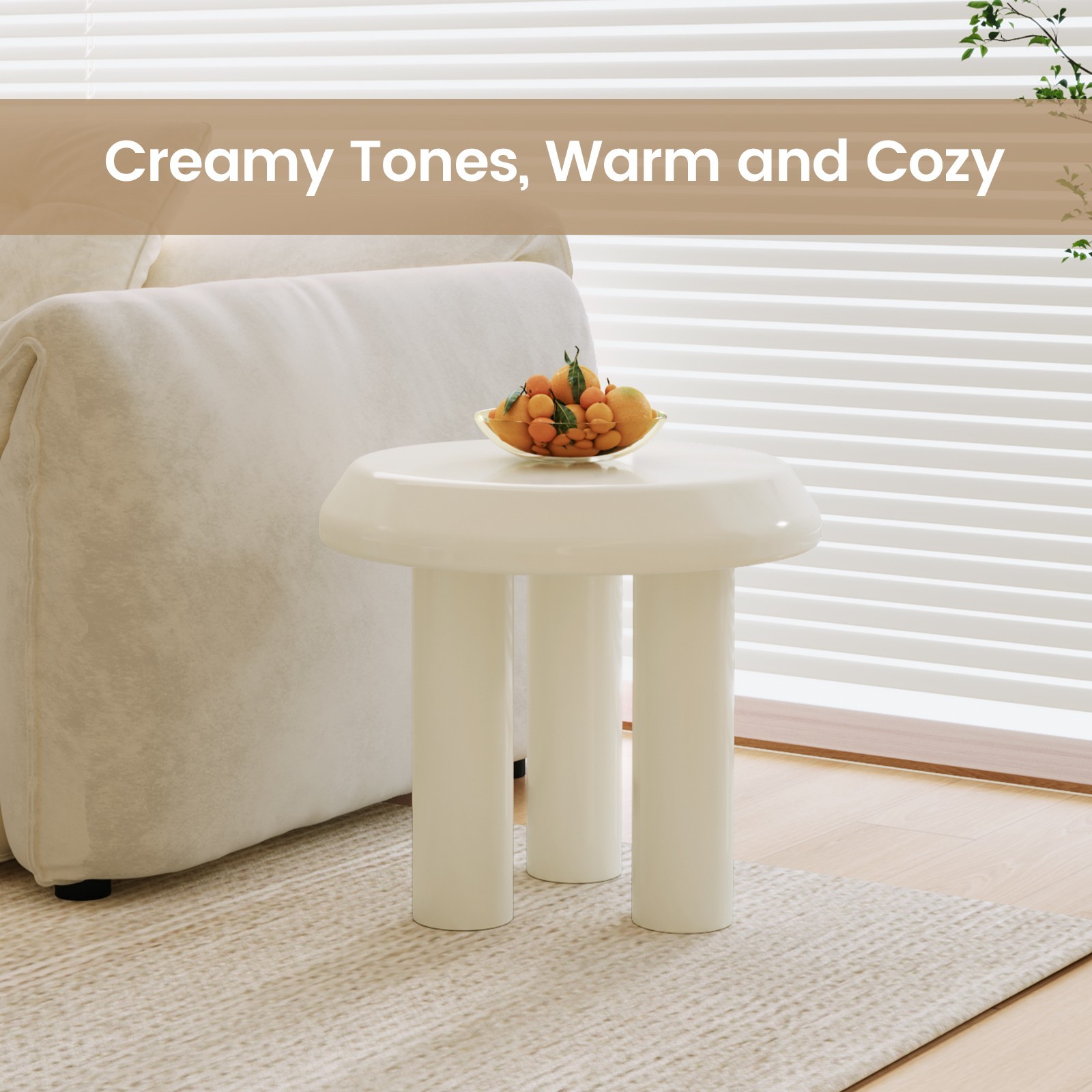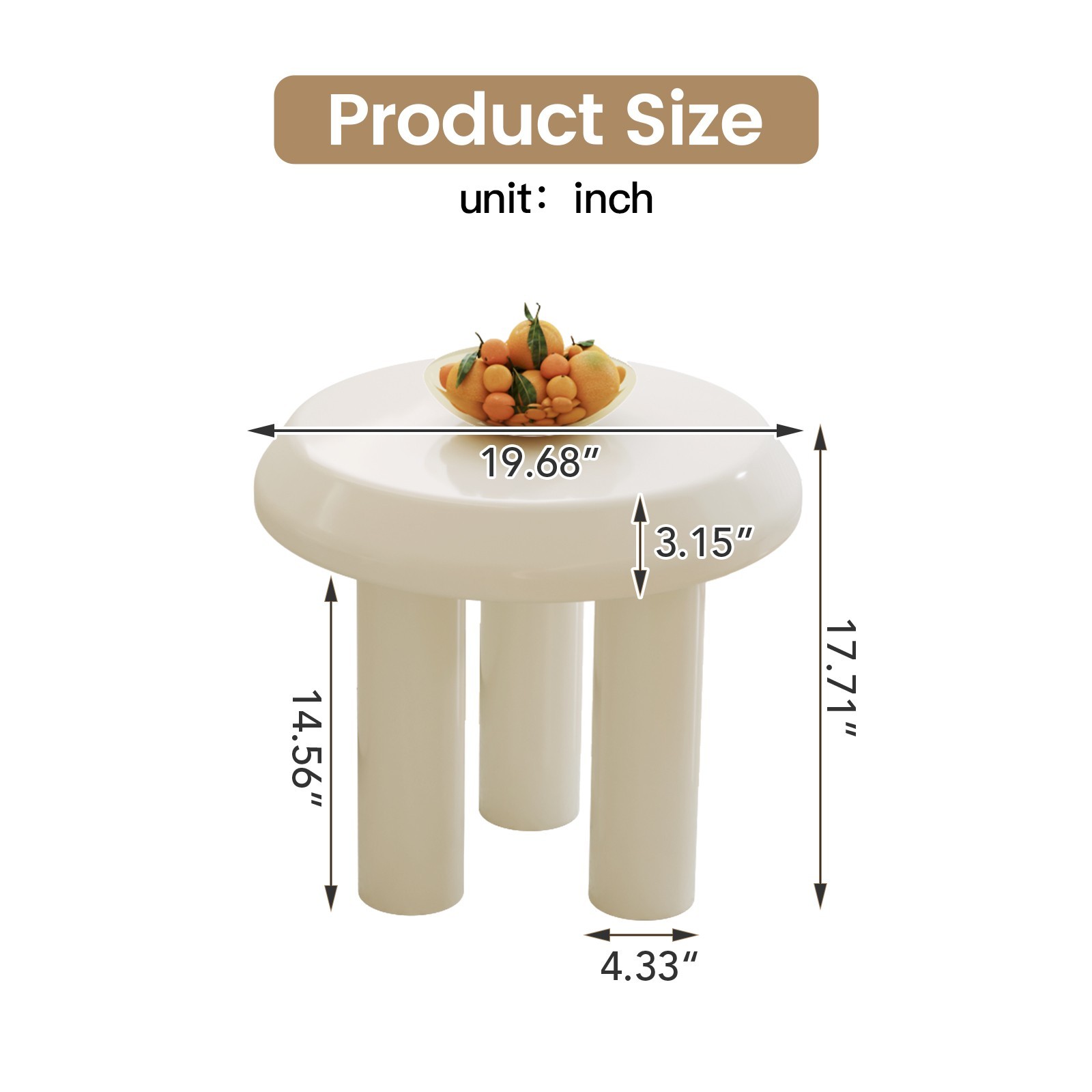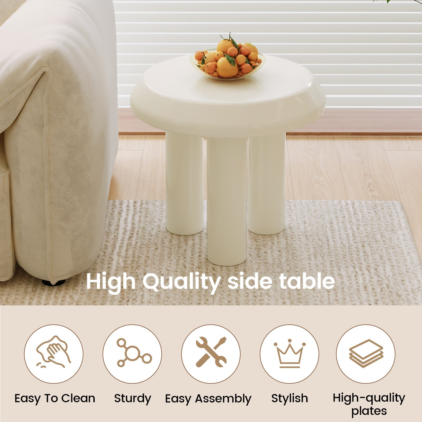 Guyii Round Side Table, Small End Table, Cream White Living Room Sofa Table for Home, Apartment, Office 【Safe Rounded Design】: The circular tabletop with smooth edges ensures there are no sharp corners, making it a safer option for households with kids or pets. 【Sturdy Construction】: Supported by three cylindrical legs, this side table provides stable and reliable support, perfect for holding daily essentials, décor, or small plants. 【Compact and Versatile】: With a tabletop diameter of 19.68 inches, the side table is compact enough for small spaces while still offering ample room for your items. 【Cream-White Finish】: The neutral cream-white color complements various interior styles, including modern, minimalist, and Scandinavian décor. 【Easy Assembly and Cleaning】: Designed for convenience, the side table can be quickly assembled with clear instructions. Its smooth surface is easy to clean, ensuring low maintenance over time. Specification: Product Dimensions: 19.68 x 19.68 x 17.71 inches (L x W x H) Product Color: White Tabletop Shape: Round Material: Engineer wood Packing Include: 1 x Side Table 1 x Assemble Instruction 1 x Accessories required for assembly