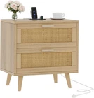 Rovaurx Rattan Nightstand with 2 Drawers, Bedside Table Small Night Natural Product Details Brand: Rovaurx Product Dimensions: 15.7"D x 23.6"W x 24"H Color: Natural Table design: Nightstand Style: Modern Item WeightFrame Material: 35 PoundsEngineered Wood Top Material TypeShape: Engineered WoodRectangular Style Home: Equipped with woven rattan, while angled legs and wooden handles, the sturdy nightstand will add a mid-century charming to your home. The rattan design on the drawer surface also brings an irresistible and attractive boho vibe to your space. Use on its own or pair it with other rattan matching pieces from Airbuyhome Nightstand with 2 USB Port and 2 AC outlets: Enjoy the joy of power close at hand! The bedside table has a charging station with 2 standard 3-prong outlets and 2 USB ports helps you easily charge your phone, tablet, desk lamp or laptop Rattan Nightstand with Large Storage Drawers: The multifunctional wooden bedroom night stand has 2 large drawers and spacious desktop, which provide ample space for your daily storage. The nightstand not only helps you organize your room, but also serves as a decoration to make your home more attractive Smooth Metal Slides: Each drawer comes with a metal slide on both sides, which enables the drawer to push and drag quietly and smoothly without worrying of any stuck Easy Assembly: Due to the simple design, labled accessories and detailed instructions, it only takes about 30 minutes, you can get a practical 2 drawer nightstand. Dimension: 23.6"L x 15.7"W x 24"H, smart size for your bedside
