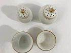 6x Royal Copenhagen The Spanish Pattern 469 Candle Holders , 215 Salt and 264 Pepper Shakers 2438 Egg Cup and 374 Small Bowl Lot Condition: Item show different signs of ware. 1279 Egg cup, Produced 1923 469 Candle Holders Height: 5,5,5 Diameter: 11,5 cm 264 Pepper Shaker Height: 8 cm Diameter: 5,5 cm 215 Salt Shaker Height: 7 cm Diameter: 4,5 cm 1279 Egg cup, Produced 1923 Height: 6 cm Diameter: 5 cm 345, Small bowl Height: 3 cm Diameter: 5,5 cm The pictures taken is the same one that you will receive. Shipping! I also combine shipping. Please contact me if you have any other questions.