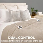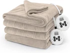 Polyester Easy to use electric blanket with digital controller with 12 heat settings and 12-hour selectable auto-shut off function for peace of mind Soft and cozy royal luxe for ideal warmth and comfort in elegant beige color 100" x 90"; King size Perfect for layering and pre-heating bed sheets on chilly nights Machine washable and dryer safe for easy care; 100% Polyester Sleep better with the Sunbeam Royal Luxe Heated King Size Blanket and beat those winter blues. Indulge yourself with its rich and cozy royal luxe, wrapping you in warmth and comfort all night long. Easy to use detachable controller with 12 heat settings to choose from and a 12-hour auto-shut off feature for peace of mind. This stylish blanket comes in elegant color options that are sure to compliment any decor. Remove the controller and place the blanket into the washer and dryer for easy maintenance.