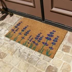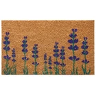 Want a flower doormat to complement the soothing decor of your home? This floral door mat might be the finishing touch you need. Painted in rich purple and green colors, each coir door mat is decorated with purple English lavenders. The purple English lavender is an incredibly popular plant and is widely used for both decoration and the creation of a soothing atmosphere. This flower doormat brings the lavender style to your doorway, complementing your home's atmosphere. Each piece of floral door mat decor is not only tasteful in appearance, but is also a very functional doormat. When it comes to these doormats, outdoor decor is their specialty. Capable of trapping moisture from the outside, wet environments should get to put up a fight against these doormats. Trapping moisture is good for Free Shipping Over $49.99* Details Rubber-Cal "Purple English Lavender" Flower Doormat, 18 x 30 Product Description: Want a flower doormat to complement the soothing decor of your home? This floral door mat might be the finishing touch you need. Painted in rich purple and green colors, each coir door mat is decorated with purple English lavenders. The purple English lavender is an incredibly popular plant and is widely used for both decoration and the creation of a soothing atmosphere. This flower doormat brings the lavender style to your doorway, complementing your home's atmosphere. Each piece of floral door mat decor is not only tasteful in appearance, but is also a very functional doormat. When it comes to these doormats, outdoor decor is their specialty. Capable of trapping moisture from the outside, wet environments should get to put up a fight against these doormats. Trapping moisture is good for a number of beneficial reasons. For one, moisture is held back from getting inside and on your floor's surface via incoming foot traffic. A wet surface can cause slips and falls, making it unsafe. When moisture is left uncontrolled, it can also spread throughout your floor, leaving it messy and undesirable to look at. Not only is each flower doormat great for providing a moisture trapping door mat, but it is also great for its eco-friendly design. Each floral door mat is surfaced with coir, a natural material. Coir is a "green" fibrous material, making this coir door mat great for those with the environment on their minds. Environmentally friendly products are also great for their low production costs. Using a natural ingredient like coir makes each flower doormat more affordable than products made with only non-natural ingredients. Not only eco-friendly, each doormat provides a bit of a barrier for your entryway's sensitive surface. Both PVC and coir come together to provide some slight cushioning against incoming contact such as foot traffic. Having a barrier like this coir door mat makes these products a nice addition for adding a little extra protection for your flooring.