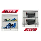 Product details The Rubbermaid 24 Gallon ActionPacker Storage Bin is tough and can withstand everyday usage. This heavy duty storage tote is made of impact resistant material and can withstand temperatures of 0-100 F. Featuring a double-walled lid, this storage bin will keep all contents safe and dry and is designed to prevent water from pooling on the lid top. This container also is designed to accommodate a lock, adding extra security to your contents. This storage container provides a storage solution for anything whether it be sports equipment, camping supplies, or even a tool chest. Rubbermaid 24 Gallon ActionPacker Storage Bin, Heavy Duty, Lockable, Black, Included Lid Black base with grey lid and red handles Stackable Outside dimensions: 26.000 in. L x 18.500 in. W x 17.000 in. H Inner dimensions: 20.000 in. L x 14.500 in. W x 15.000 in. H 24 Gallon / 90.8 Liter load capacity, 50 pounds