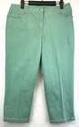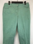Elevate your wardrobe with these stunning Ruby Rd. Petite Capri Pants. Perfect for any occasion, whether it be for travel, workwear, or casual wear, these pants come in a beautiful green color and are made of a comfortable blend of polyester, spandex, and cotton. The pants feature an elastic waistband and pockets for added convenience, while the studded accents give them a touch of bohemian flair. The mid-rise fit and straight leg style make these pants flattering for any body type, and they are available in a Women's Size 12P. These pants are machine washable and have a flat front, making them easy to care for and perfect for everyday wear. Add these fun and preppy pants to your collection today! Very good preowned condition with normal preowned wear and issues. Please see all photos. For clothing specifically, see photos for all measurements and/or any issues if applicable. Pay close attention to the measurements as the size of the garment may quite possibly be different than the actual measurement(s) due to washing, shrinkage, or stretching as these are used clothes. The size in the title is the size on the tag of the garment. See photos for measurements of actual measurements as they may differ. ALWAYS CHECK THE MEASUREMENTS IN THE PHOTOS. This will remove any questions on measurements as well as always cover the possibility of human error in the listing(s) in the case of a typo or oversight. All clothing and shoes have been washed/cleaned, and comes from a smoke free environment. If shoe trees appear in the photos, they are for photography purposes only to illustrate how the shoes look filled out, and are not included. I am available for questions. I accept or negotiate reasonable offers. Have an amazing day. Thank you.