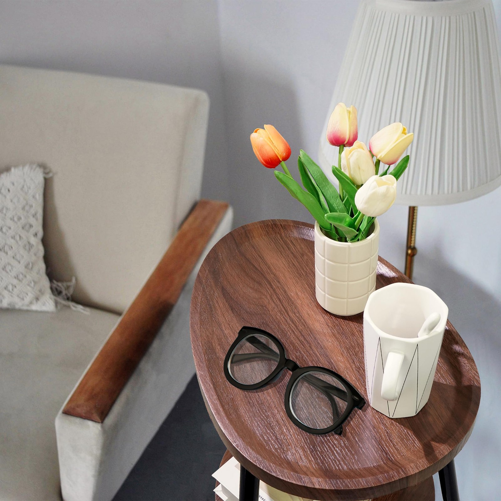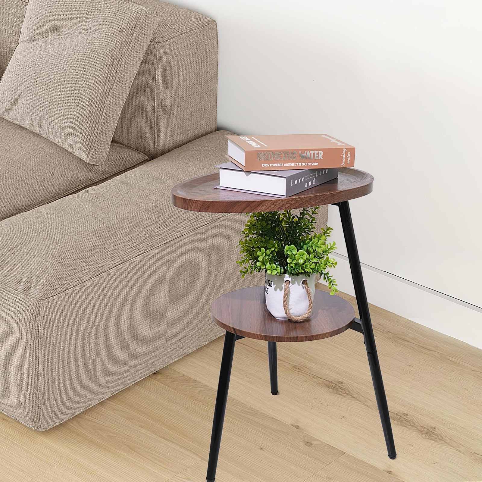 Side Table Small End Table, Oval Round Wood Sofa Table, 2 Tier Accent Table Nightstand Bedside Table with Metal Frame for Living Room, Bedroom, Small Spaces (Rustic Brown) 2 TIER OPEN SIDE TABLE: Two tier small end table with open shelf design, easy to pick up and place your favorite books, magazines and home decorations, convenient for you to place small items such as cell phones, snacks, books, lamps and small potted plants STRONG MATERIAL: Made of durable reinforced metal frame, waterproof and anti-scratch, with a thicker fall protection rail at the end of the table to prevent items from falling. Sturdy metal frame ensures stability. Adjustable rubber feet protect the floor from scratches and maintain balance even on uneven floors EASY TO ASSEMBLE AND SIZE: Comes with the necessary installation tools and installation manual, it only takes 10 minutes to set up the small drink table, the overall size is 17.3“(L) x 16.1”(W) x 23.8"(H) SPACE SAVING: The small table is lightweight and takes up little space, so it is easy to move it to any position in your home, or between sofa gaps and small corners of your home easily SUITABLE FOR MULTIPLE SCENARIOS:The small table is usually placed next to the bed or sofa, it can be used as a small couch table, coffee table, nightstand, bedside table,coffee table, corner table or plant stand. This end of bed table is a perfect addition to your living room or bedroom End Table Side Table with Metal Frame, Accent Table Nightstand Bedside Table with 2-Tier Shelves for Living Room Bedroom Couch Small Coffee Table Rustic Brown Shipping We offer FREE shipping on all orders! We ship within Three business days of payment, usually sooner. We use a selection of shipping services such as UPS, FedEx, USPS etc. We only ship to the lower 48 states, no APO/FPO addresses or PO Boxes allowed. Local pickups and combined shipping options are not provided at this time. Return You can return a product for up to 30 days from the date you purchased it. Any product you return must be in the same condition you received it and in the original packaging. Please keep the receipt. Payment We accept payment by any of the following methods: PayPal Please pay as soon as possible after winning an auction, as that will allow us to post your item to you sooner! Feedback Customer satisfaction is very important to us. If you have any problem with your order, please contact us and we will do our best to make you satisfied. Contact Us If you have any queries, please contact us via ebay. We usually respond within 24 hours on weekdays. Please visit our eBay store to check out other items for sale! Thank you for shopping at our store.