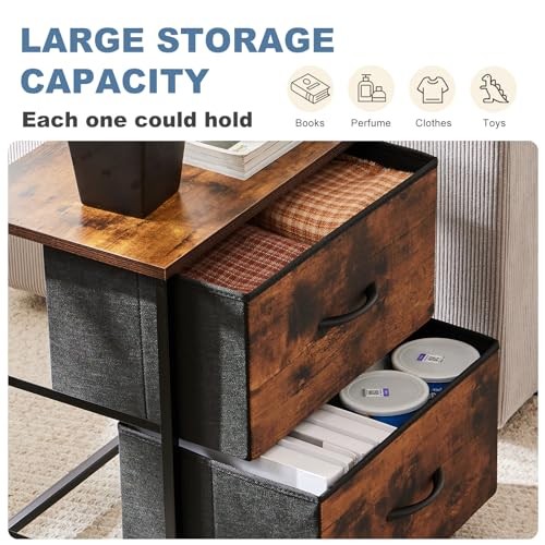 Return Policy Fast Delivery Trusted seller Nightstand Small Dresser with 2 Fabric Drawers Side Tables Bedroom End Table Kids Bedside Storage Furniture for 20 inch Tall Night Stand for Closet, Entryway, College Dorm, Rustic Brown(2 Pack) Product Description 【Nightstand for Bedroom】The nightstand with 2 storage drawers is a versatile and functional piece of furniture that offers ample space for organizing and storing various items. Whether it's clothes, accessories, or miscellaneous items, the drawers allow for easy organization and quick retrieval of items when needed. With a height of 20 inches, it is the perfect size for placing next to a bed, providing easy access to essentials, such as books, glasses, and a lamp. 【Wooden Top & Fabric Drawers】the nightstand features a wooden top, which not only adds an elegant touch to the overall design but also provides a sturdy surface for easy cleaning, ensuring that any spills or messes can be quickly wiped away. The fabric cabinet of the nightstand is another key feature that sets it apart. The fabric adds a soft and inviting texture design and complements the wooden top perfectly. 【Compact Size & Durable】This nightstand is ideal for small rooms such as apartments, college dorms, or entryways. It maximizes storage capabilities without taking up excessive space. This allows it to serve as a mini dresser, accommodating clothes or accessories in an organized manner, making it an excellent choice for those with limited storage options. The nightstand is also designed with durability in mind. It is made from high-quality metal and fabric. 【 Adjustable Feet & Lightweight】The adjustable feet allow it to adapt to different surfaces and heights, ensuring stability and balance for the nightstand. Additionally, the lightweight design enhances portability and maneuverability. The lightweight nature also facilitates convenient storage and assembly without the need for additional tools or assistance. 【Assemble & Service】The packaging is equipped with instructions and an accessories bag, which allows only about 20 minutes to assemble your fabric dresser with detailed instructions and the installation video. If you have encountered any problems, we would be delighted to help you find a solution and reply to your email within 24 hours. Shipping Returns Payment Shipping Shipping is FREE to all addresses other than APO/PO boxes in the lower 48 states. All our stock ships from US-based warehouses. Shipped via USPS or UPS (depending on location and package weight) Unless stated otherwise, all orders will ship within 24-72 hours of your payment being processed. Check our feedback to see the great reviews of FAST shipping we offer. Returns Seller does not accept returns Payment We currently accept payment via eBay managed payments only. Once payment is cleared, we will dispatch your shipment within 1-3 business days. Please refer to the "Shipping" tab for more information regarding shipping speed to your destination.