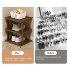 This rustic organizer is a total game-changer! It fits perfectly in that awkward corner space and keeps all my shoes neatly arranged. The wood looks beautiful and it was super easy to assemble. Finally solved my clutter problem!