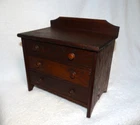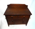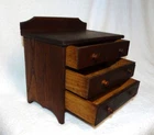 Early 20 th Century American Art Antique Primitive Homemade Chest of Drawers-Dark Stained-3 Drawers Approx. 7 3/4” tall & 8´wide & 5” deep This early 20th century American Tramp art, antique primitive, small three drawer, dark stained oak, hardwood storage chest or toy bureau is entirely fashioned from found, salvaged oak wood pieces. It was stained in a dark walnut color, most likely using pine pitch, to darken the oak hardwood to the color it is now. Great Vintage Condition Happy to combine shipping Nonsmoking home Have a Blessed Day & Thanks for Looking
