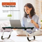 PORTABLE & ADJUSTABLE: The lap table is lightweight and easy to carry, making it perfect for use in bed, on the couch, or anywhere else. Its foldable lap desk, allowing you to find the most comfortable position for your eyes, neck, and back. STABLE & DURABLE: The laptop bed desk is made of high-quality materials and is designed to be stable and durable, even when used on uneven surfaces. The anti-slip surface and sturdy legs ensure that your laptop stays in place and doesn't slide around or tip over. MULTI-FUNCTIONAL: This portable desk for laptop is not just for use in bed - it can also be used as a TV tray, breakfast tray, or reading desk. It's perfect for those who need to work from home or enjoy entertainment in bed. ERGONOMIC DESIGN: The laptop table for bed is designed with ergonomics in mind, ensuring that you can use your laptop for long periods of time without straining your neck, back, or eyes. The desk also helps to keep your laptop cool, reducing the risk of overheating. EASY TO USE & CLEAN: The lap desk for bed is easy to use and requires no assembly. Simply unfold it and adjust the height and angle to your liking. It's also easy to clean, making it a great choice for those who are looking for a convenient and hygienic solution.