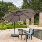 Product Information Main Color: Gray Use Case: Garden & Outdoor Shades Type: Umbrellas Main Material: Aluminium Product Dimensions Item Length (in.): 116.50 Item Width (in.): 116.50 Item Height (in.): 111.00 Weight (lbs.): 22.05 Package Size Sub-item 1 Package Quantity:1 79.00 * 15.75 * 7.00 in 29.96 lbs Sub-item 2 Package Quantity:1 32.50 * 24.25 * 6.50 in 16.98 lbs Product Features Modern style: with clean, precise lines, our canopy umbrella is created with a chic, minimalistic aesthetic and functionality in mind. Minimum counterweight: this umbrella requires a minimum of 100 lbs. Of counterweight to stand correctly. Weather resistant: this umbrella is designed and tested to resist mild weather conditions. We always advise covering, storing, or providing other protection to our furniture in the event of heavy or repeated exposure to the elements, including water and UV rays. Aluminum frame: this umbrella is built with lightweight aluminum, creating a versatile yet durable frame. Base included: this umbrella set comes with a resin-made base, complete with a drainage hole, that you can fill with water to weigh your umbrella down.