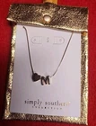 This Simply Southern necklace is the perfect gift for any occasion. The 18-inch necklace features a gold-plated heart & initial charm with a lobster closure. The charm is moveable and the necklace is adjustable, making it a great addition to any jewelry collection. The box chain adds a touch of elegance to the necklace, which is brand new and in excellent condition. The necklace is ideal for anniversaries, birthdays, and Valentine's Day.
