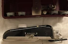 THIS IS A VINTAGE SINGER SEWING MACHINE BUTTONHOLER 160743 WITH TEMPLATES IN ORIGINAL PLASTIC CASE, APPEARS VERY CLEAN AS IF SELDOM IF EVER USED, UNTESTED. SEE PHOTOS FOR BEST DESCRIPTION.