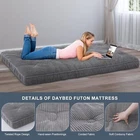 Exquisite Craftsmanship - The futon mattress has a sophisticated look and even more attention to detail, with hand-stitched locations to prevent the fillings inside from moving and being misplaced. Indulge in the delicate and soft touch of this exquisite fabric and enjoy its breathability; 5-Layer Foam Filling - Our sofa bed futon mattress adopts five-layer design, which is skin-friendly, comfortable and breathable. The combination of memory foam and extra padding filled in the mattress is not only soft, but also provides good support for your body, relieves pressure, and makes you feel relaxed and comfortable; Crafted with Precision - Our futon mattresses are not only elegant, but also exquisitely crafted. Multiple hand-stitched areas ensure the filling is perfectly secured, allowing you to experience unparalleled detail. Dimensions: 39"W x 75"L. Please note that the mattress does not come with a bed frame; TIPS - Due to the compression packaging, there may be a bulge in the middle of the mattress, please don't worry, after laying the mattress flat on the floor for a few days, the bulge will disappear. Please dry the floor mattress in the sun frequently to keep it fluffy; Wide Range of Uses - Our Daybed Futon Mattress can easily convert it from a sofa to a bed or use it as a comfortable floor mattress. Adjust its use according to your needs and improve the comfort of your daily life;