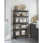 Sturdy and High Load Capacity: Built with a durable steel frame and thick MDF panels, each shelf can hold up to 386 lbs, providing a total weight capacity of 1,929 lbs. Reinforced crossbeams add extra stability, ensuring safe and reliable storage for heavy items. Adjustable Shelves for Versatility: Customize your storage with adjustable shelves, allowing you to change the height in 14" increments. Perfect for storing items of various sizes, including boxes, containers, tools, and sports equipment. Easy Boltless Assembly: This shelving unit is designed for hassle-free, tool-free assembly. Quickly get your items organized and off the floor with its bolt-free design, which also makes disassembly and relocation simple. Convertible 2-in-1 Design: Each unit can be divided into two smaller shelves, offering flexible setup options. Use them side-by-side, in an L-shape, or as separate units in different rooms to suit your space and storage needs. Thoughtful Features for Safety: The unit includes protective foot pads to minimize noise and prevent floor scratches. An anti-tip kit is also included for secure wall attachment, enhancing stability and safety. Specifications: Dimensions: 11.8 x 29.5 x 59.1 inches Maximum Load Capacity: 386 lbs per shelf Material: Steel frame and MDF panels Color: Black This heavy-duty shelving unit is perfect for garages, warehouses, basements, kitchens, or sheds, offering reliable and adaptable storage solutions for all your organization needs.