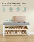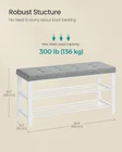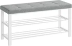 [Strong Support] This shoe storage bench supported with a robust powder-coated steel frame offers firm and reliable support (max. static load 300 lb) [Cozy Sitting] With 2" thick foam padding and a breathable linen cover, this entryway bench offers maximum comfort when you sit on it to change your shoes [Hold Your Daily Footwear] The 2-tier shoe bench provides ample space to store up to 10 pairs of shoes. Whether you have heels, sneakers, or slippers, this organizer will keep them neatly organized and easily accessible [Easy to Assemble] Simple structure, numbered parts, and easy-to-follow instructions will help you finish the assembly of this shoe rack bench effortlessly [Versatile Uses] Use it in the entryway as a shoe organizer, in the living room as an extra seat, in the bedroom as a bed end stool—wherever you place it, this shoe rack always comes in handy Product Dimensions 12.2"D x 39.4"W x 19.3"H Color Dove Gray + Cloud White Size 39.4"W Furniture Finish Dove Gray On Feb 18, 2025 at 19:39:41 PST, seller added the following information: