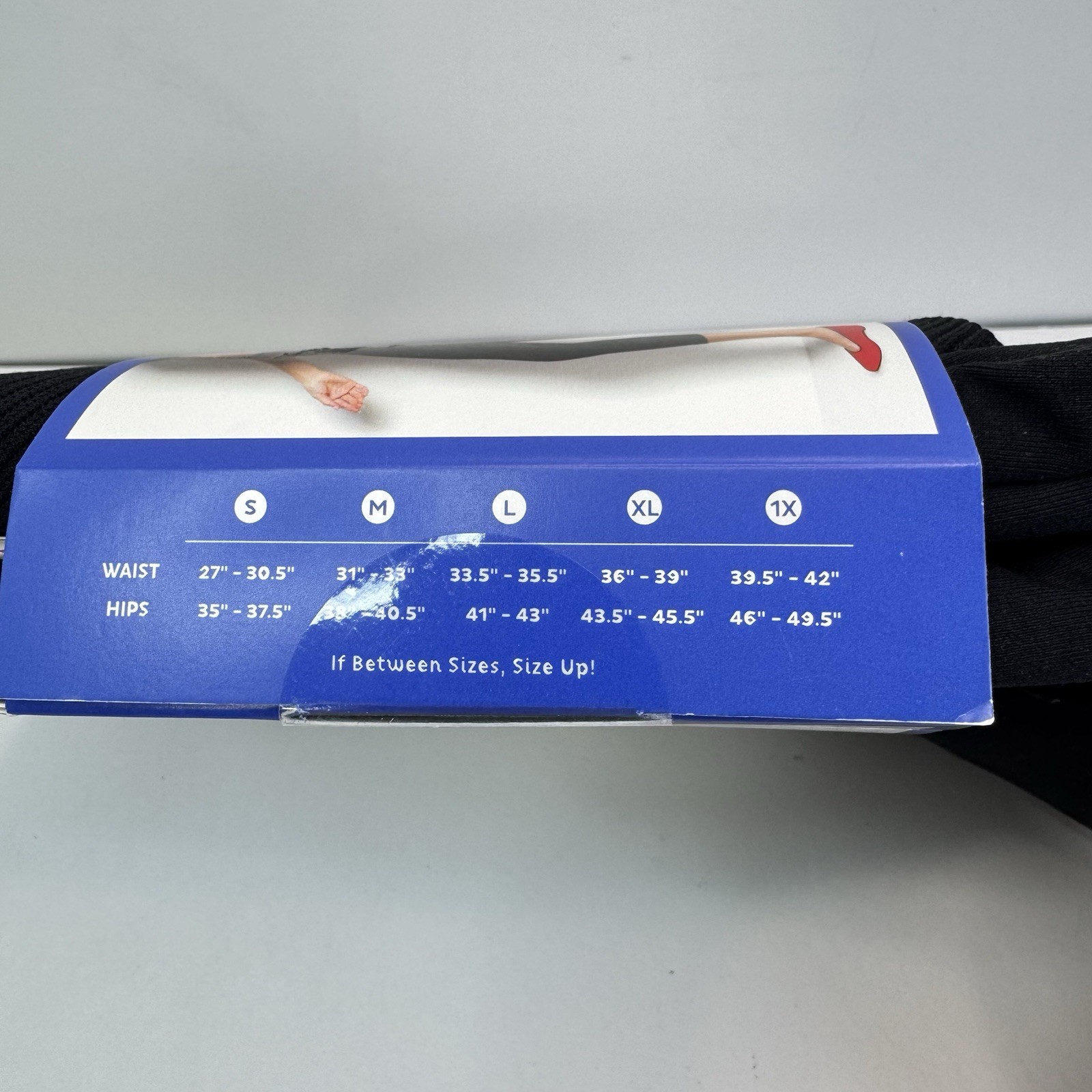 The product is a pair of Women's SPANX Assets Cropped Shaping Leggings in Black, size L. These leggings are designed by Assets by Spanx and are specifically tailored for women with a regular size. The solid black color and cropped style provide a sleek and modern look, while the shaping feature helps to smooth and contour the figure. With a waist size range of 33.5" - 35.5", these leggings offer a comfortable and flattering fit for a range of body types. Waist: 33.5”-35.5” Hips: 41”-43”