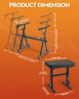 【Adjustable Versatility】The SKT-02 Z keyboard stand is fully adjustable in both height and width, accommodating a variety of digital pianos, keyboards, synthesizers, mixers, and MIDI keyboards from 54 to 88 keys. The SPB-M50 adjustable piano bench can be set from 46 cm to 54 cm, with four height levels, ensuring the perfect fit for different postures, heights, and instrument setups 【Premium Materials】The keyboard stand is made of durable metal, resistant to deformation and capable of supporting heavy loads. The Z-frame structure provides greater stability and load-bearing capacity compared to traditional stands. The piano bench is crafted from robust metal with a cushioned seat featuring high-quality soft padding and PU leather, ensuring stability, comfort, and durability for prolonged use 【Stable Fixation】The keyboard stand includes adjustable supports, anti-slip rubber feet, and two secure straps that fasten your keyboard to the stand, preventing unwanted movement or tipping. It also features a headphone hook for added convenience. The piano bench is equipped with rubber feet to enhance stability and prevent slipping 【Easy Assembly & Disassembly】Both the keyboard stand and piano bench are designed for quick assembly and disassembly with simple structures, complete with an instruction manual for easy setup, making them perfect for musicians on the go 【Portable & Lightweight】The lightweight design of the piano bench and keyboard stand makes them easy to transport and set up in various environments, whether at home, in a studio, or on stage. The adjustable features ensure they can be tailored to different spaces and performance settings, offering maximum flexibility