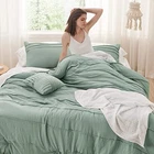 30 Days Return Policy Fast Delivery Trusted seller Sage Green King Size Comforter Set - 4 Pieces Pinch Pleat Bed Set, Down Alternative Bedding Sets for All Season, 1 Comforter, 2 Pillowcases, 1 Decorative Pillow Product Description Elegant Home Decor: This comforter set combines the exquisite pinch pleat design with a stripe pattern, bringing a touch of sophisticated style to any sleeping space. It is a perfect gift for your loved ones or just to show you care. Premium Filling: Featuring 's thoroughly tested microfiber filling blend, this down alternative comforter bedding set maintains the perfect balance between weight and warmth, creating a cloud-like sleeping space all year round. Extra Soft: The prewashed microfiber cover offers exceptional softness and gorgeous natural texture, providing maximum comfort without any rustling noise. Certified for Safety: This comforter set is Standard 100 by OEKO-TEX certified for meeting the highest testing criteria for harmful chemicals and has been found harmless for humans. Easy Care: With the premium microfiber fabric and ’s unique dyeing technique, this comforter set resists fading, shrinking, and seam slippage after washing. Machine wash separately in cold water on a gentle cycle and tumble dry low. Do not iron. Inclusive Bedding Set: This king size comforter set comes with 1 comforter (104" x 90"), 2 pillowcases (20" x 36"), 1 Decorative pillow (12" x 16") to completely transform your bare mattress into a cozy sleep haven with year-round comfort and warmth. Shipping Returns Payment Shipping Shipping is FREE to all addresses other than APO/PO boxes in the lower 48 states. All our stock ships from US-based warehouses. Shipped via USPS or UPS (depending on location and package weight) Unless stated otherwise, all orders will ship within 24-72 hours of your payment being processed. Check our feedback to see the great reviews of FAST shipping we offer. Returns As our valued customer, we will do our best to make sure the product you receive arrives to you on time and as expected. If you are not satisfied with your purchase, please contact us within 30 days of receiving your order to process a return. Payment We currently accept payment via eBay managed payments only. Once payment is cleared, we will dispatch your shipment within 1-3 business days. Please refer to the "Shipping" tab for more information regarding shipping speed to your destination.