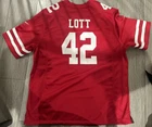 Team:San Francisco 49ersSize:2XLSport:FootballColor:RedProduct:JerseyGender:MenBrand:NikePlayer:Ronnie LottLeague:National Football League (NFL)Officially Licensed:Yes