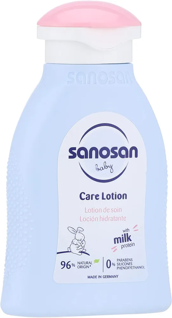 3x Sanosan Baby Lotion For delicate Skin - 100ml Each Description Gentle care for baby‘s skin The rich recipe with organic olive oil and milk protein guards baby’s skin against dryness and supports its natural protective function, preserving its natural moisture content. Active substances that are carefully chosen and perfectly harmonised to the needs of tender infant skin for care after cleansing. Suitable for daily use. The effective formula does not contain paraffin oil, colourants, silicones or parabens. The skin compatibility has been clinically confirmed. Recommended by midwives. Use: Warm a small amount in your hands. Use circular motions without any pressure to apply to your baby’s skin. Terms of Sale Color May Vary Slightly Due to the Color Calibration of Each Individual Monitor and Light Brightness Concentration During Taking Picture . Please Note the Picture Not Refer the Actual Sizes of the Goods and You Should Referee to Description and Item Details. We are not responsible for any customs charges or any other international fees that are not associated with PayPal. Customs and duties charges and any Additional charges for customs clearance will solely be the responsibility of the buyer. When Customs Clearance Procedures are Required, It Can Cause Delays Beyond our Original Delivery Estimates and We are Not Responsible for any Delays Resulting from That. Shipping Information We Ship Worldwide Direct from Egypt Within 2 - 4 Working Days Via DHL with Tracking Number for Every Shipment. Estimated Delivery Time 5 - 7 Working Days After Item Dispatched to Courier. Please don't forget to LEAVE me FEEDBACK after you get your item in a Satisfactory Condition. If you have any problem with the item, please let me know as soon as possible. Thank You for Visiting Us
