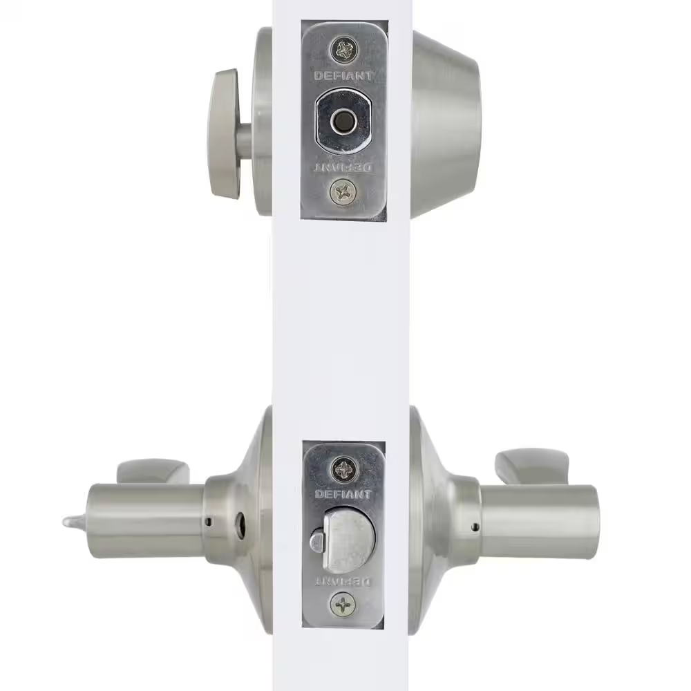 Fast Shipping On All Items 30 Days Money Guarantee Customer Support Excellent Service 100% Satisfaction Satisfaction Guaranteed Naples Satin Nickel Combo Pack with Single Cylinder Deadbolt Specification Commercial/Residential Residential Door Lock Style Classic Door Locks & Knobs Product Type Lever Combo Packs Door Type Entry w/ Deadbolt Electronic/Mechanical Mechanical Features Adjustable Backset,Easy Installation Finish Satin Nickel Finish Family Satin Nickel Hardware Color Family Nickel Hardware Included Lock with Keyed Lever Included Drilling Template,Installation Instructions,Mounting Hardware Interior/Exterior Exterior Keyway KW1 Material Zinc Product Weight (lb) 2.85 lb Returnable 90-Day Security/ANSI Grade ANSI Grade 3 (Good) Manufacturer Warranty Limited Lifetime Guarantee Assembled Depth (in) 6.50 in Assembled Height (in) 2.83 in Assembled Width (in) 5.50 in 5.5 inches x 6.5 inches x 2.83 inches. Weight: 2.85 lb Item Description Locks resist drilling, sawing, picking and prying Can be re-keyed to match an existing KW1 key Easy to replace and install with a Phillips screwdriver Guard against intrusions and keep your home and family protected with the Naples Entry Lever and Single Cylinder Deadbolt Combo Pack from Defiant. This bundle includes 4-keys that lock/unlock both the entry lever and deadbolt, which are built to withstand drilling, sawing, picking and prying. The sturdy lockset affixes easily with the included fasteners, compatible with most residential exterior doors and requiring only a screwdriver to install. Rest easier at night knowing your entryway is fortified with these ANSI Grade 3-certified devices. This set can be rekeyed using a traditional KW rekey kit. Please speak with your local Home Depot for further details about this process. Featuring 70 mm rose to cover old paint marks around lever Limited lifetime guarantee Easy installation and replacement with just a Phillips screwdriver Ideal for exterior door applications where locking with a key is desirable Features an EZ fit lever latch to accommodate 2-3/8 in. or 2-3/4 in. backset without any adjustments needed Includes 1 entry lever, 1 single cylinder deadbolt, 4-keys and mounting hardware Fits doors between 1-3/8 in. to 1-3/4 in. thick Deadbolt latch can be changed from a 2-3/8 in. backset to a 2-3/4 in. backset with a twist About us We offer the best prices around on high quality products. Our E-store includes media such as books, movies, music and games while offering electronics, toys, sporting apparel, clothing, tools, general home, garden items and more. Shipping We are always working hard to ensure your package arrives as soon as possible. Please understand that some factors like weather, high postal traffic, and the performance of shipping companies are outside of our control. We offer free shipping to the lower 48 states and ship within 2-3 business days of payment, usually sooner. We do not accept P.O. Boxes. Please provide a physical address. For shipping outside of the continental USA, we only use eBay's Global Shipping Program.The item is shipped to KY and then sent to the rest of the world. International customers are responsible for all duties and taxes. Continue to check out to calculate costs for shipping the item to your country. Messages regarding eBay's Global Shipping Program MUST be directed at eBay EXCLUSIVELY. Returns We offer a 30-Day Return Policy on items in which you are not completely satisfied with. You have the option of a full-refund or an exchange of the item. No returns are available on items shipped outside of the USA Satisfaction We try over very best to make sure every customer is completely satisfied. If there's a problem, message us! We're happy to help. Payment Options Shop With Confidence