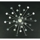 NOTE - DUE TO THIS IS A SET OF 2 (DAMAGE MAY VARY PER PRODUCT AVAILABLE) this item is being sold at a reduced price. Creatively Crafted of Metal in an Eye-Catching 3D Spiked Design Detailed with Sparkling Faceted Jewels The Metallic Finish Complements a Variety of Styles and Color Schemes From Retro to Modern Create Your Own Cluster On the Wall or Create an Original Centerpiece as a Table Decoration 10 inch Diameter, 1.75 inch Wide Each Our eBay Store About Us Add to Favorite Sellers Jeweled Bursting Star Wall Sculpture Set of 2 NOTE: DUE TO THIS IS A SET OF 2 (DAMAGE MAY VARY PER PRODUCT AVAILABLE) this item is being sold at a reduced price. NOTE - DUE TO THIS IS A SET OF 2 (DAMAGE MAY VARY PER PRODUCT AVAILABLE) this item is being sold at a reduced price. Creatively Crafted of Metal in an Eye-Catching 3D Spiked Design Detailed with Sparkling Faceted Jewels The Metallic Finish Complements a Variety of Styles and Color Schemes From Retro to Modern Create Your Own Cluster On the Wall or Create an Original Centerpiece as a Table Decoration 10 inch Diameter, 1.75 inch Wide Each NOTE: DUE TO THIS IS A SET OF 2 (DAMAGE MAY VARY PER PRODUCT AVAILABLE) this item is being sold at a reduced price. Everyone could use a little sparkle in their life, and these uniquely beautiful accent pieces will look wonderful hanging in your home no matter the style. Reminiscent of floating dandelion flowers or bursting stars but with a sparkling twist, these sculptures are eye-catching with their jeweled points exploding outward from the center. Each piece consists of a sphere of metal rods, bursting outward from the center like the rays of a star or fireworks. Between the bold shape and the metallic finish, these elegant works of art are nothing less than stunning. Hang each separately to tie a larger space together, or arrange them in a series to create a sophisticated and coordinated look. From retro to modern styles, this set is perfect for anyone with an eye for the unusual and a modern sense of style. Each star measures 10 inches in diameter and releases from the wall 1.75 inches. Product Details Color D-Silver Height 10 Length 10 Weight 0.3 LB