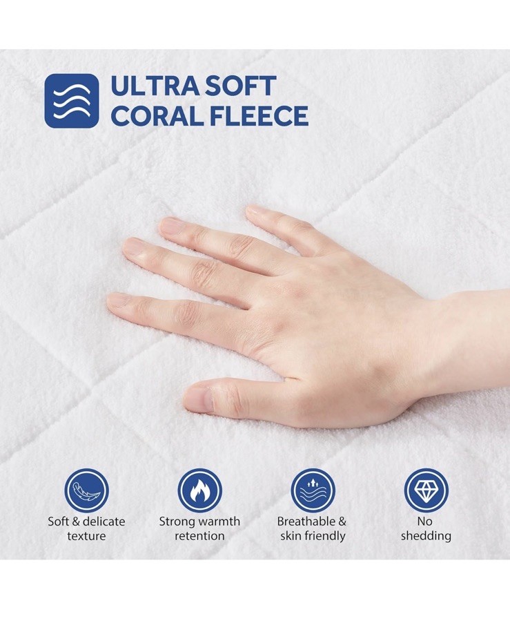 Open box new item! Coral Fleece(top Layer) ★【PREMIUM MATERIAL】 The top layer of this plush heated mattress pad is made of premium breathable Coral Fleece, known for its ultimate softness and plush texture, providing a luxurious feel against the skin. It also offers excellent thermal insulation, keeping you warm and dry by trapping body heat. Heated mattress pad with plush top is an ideal choice for those seeking comfort, warmth, and durability. ★【WHY CHOOSE SEALY HEATED MATTRESS PAD】If you are not a fan of getting into a cold bed, especially during the winter. This Sealy heated mattress pad is ideal to preheat the bed. Ultra comfort with coral fleece offers the best of both worlds. This electric mattress pad has deep pockets that fit most mattresses. The skirt contains strong elastic that helps it stay put. The padding on top is plush enough that there is no sensation of wires when lying on it, which makes for a great night sleep. ★【MAXIMUM SAFETY & WARMTH】Upgraded heating wire is adopted in the plush heated mattress pad, which has passed the ETL and FCC safety standard. Sealy electric mattress pad can promote blood circulation, help relieve muscle soreness and joint pain by providing heat therapy, and warm your cold hands and feet. ★【PROGRAMABLE CONTROLS】The heated mattress pad has 1-12 hours automatic power off and overheat protection, don't worry about forgetting to turn off the power, make you more assured; dual controller, 10 temperature gears, simple operating system make it easy to use, you can freely adjust your own optimal temperature. ★【EASY CARE & MACHINE WASHABLE】This heated mattress pad is machine washable, just unplug the power cord from the controller and throw it into the washing machine under 30℃ water temperature to wash, clean and durable. CAUTION: DO NOT DRY CLEAN. DO NOT BLEACH. DO NOT IRON.DO NOT PLUG IN AND POWER UP YOUR HEATED PRODUCT WHILE DAMP. DO NOT USE UNTIL IT IS COMPLETELY DRY.