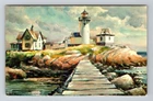 Seascape Watercolor Lighthouse, Painting, Vintage Postcard