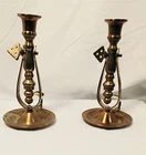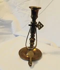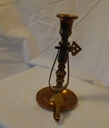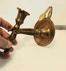 These are oil burner candles . They have a handle, a swivel, and a wall mount hook. No matter how you carry it, the flame will always be upright The total height of this is approximately 6 inches overall. The drip pan/pot does have a discoloration, possibly from spillage?