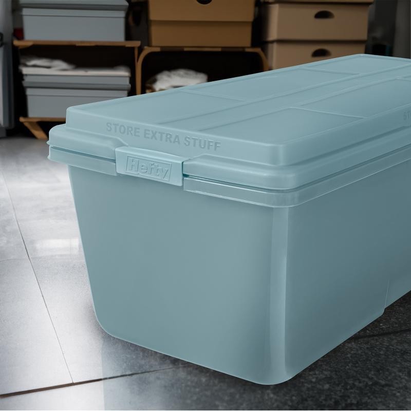 You may also like Set of 4 Stackable Clear Bins W/ Snap-on Lids Storage Organizers Household Use 51.74 USD 54.46 USD Free shipping 5% off Stackable Plastic Storage Bins W/ Lids Home Office Organization Durable Totes US 15.7 USD 16.53 USD Free shipping 5% off Clear Photo Organizer W/ Handle 16 Storage Cases Holds 1600 Photos Portable Box 36.56 USD 38.48 USD Free shipping 5% off Clear Storage Bin 41Qt Plastic Container Snap-On Lid Stackable Home Organizer US 14.45 USD 15.21 USD Free shipping 5% off Plastic Storage Bins W/ Lids Stackable Tote Durable Organizing Container 12.95qt 10.31 USD 10.85 USD Free shipping 5% off Durable Clear Storage Bin W/ Lid Stackable Container Garage Closet Attic 108 Qt 21.26 USD 22.38 USD Free shipping 5% off 30 Drawer Small Parts Organizer Desktop Wall Mount Storage Cabinet Tool Craft US 39.18 USD 41.24 USD Free shipping 5% off Clear Plastic Storage Bin 18Qt Stackable Container W/ HI-Rise Lid 8 Pack New 67.59 USD 71.15 USD Free shipping 5% off Large Storage Bin W/ Latching Lid Stackable Plastic Storage Container Garage Use 13.11 USD 13.8 USD Free shipping 5% off Stackable Storage Bins W/ Lids 6 Pack Plastic Containers Home Organization New 31.08 USD 32.72 USD Free shipping 5% off Medium Plastic Storage Bins 2 Pack Clear Stackable Organizers Home Office New 18.84 USD 19.83 USD Free shipping 5% off 2 Pack 12 Gallon Stackable Plastic Storage Bin Container W/ Snap On Lid New 23.35 USD 24.58 USD Free shipping 5% off The Hefty 28. 3 Gallon Plastic Garage Storage Tote is a perfect storage solution to save space in your life. This rugged, durable container is great for garage organization and basement organization. Use these plastic containers for attic storage, shelf storage, and to organize seasonal items such as outdoor decorations and utility tools. These totes are also good for sports equipment storage--the secure stacking and above the rim storage features make this storage tote an ideal storage solution. Adult usage. Rugged storage base and ribbed lid for strength and durability Click latches ensure secure closure Adult usage Brand: Hefty Recommended Room: Garage Material: Plastic Color: Smoke Blue Finish: Gloss; Matte Number of Compartments: 1 Count: 4 Volume Capacity: 28. 3 gal Shape: Rectangular Has Lid: Y Features: Stackable Cleaning, Care & Maintenance: Wipe clean with damp cloth Theme: Hefty Storage Tote Age Group: Adult Assembled Product Weight: 5. 5 lb Maximum Load Weight: 30 lb Size: 36. 1 x 16. 8 x 14. 3" H Manufacturer: HMS MFG CO Manufacturer Part Number: HFTCOM-7164665665666-4 Model: HFTCOM-7164665665666-4 Assembled Product Dimensions (L x W x H): 36. 04 x 16. 81 x 14. 24 Inches You may also like High Dome Electric Roaster Oven 22Qt Non-Stick Self-Basting Stainless Steel Rack 77.15 USD 81.21 USD Free shipping 5% off Kids Toy Storage Organizer W/ 2 Wood Chalkboard 16 Durable Plastic Bins Bedroom 87.88 USD 92.5 USD Free shipping 5% off All Natural Canned Pork Fully Cooked High Protein Quick Meal Prep 2 Pack New 20.85 USD 21.95 USD Free shipping 5% off Heavy Duty Steel Shooting Rest Adjustable Recoil Reducing Support Stable Design 90.23 USD 94.98 USD Free shipping 5% off Vertical 2-Stage RV Propane Regulator Gas Flow Control Adapter 160000 BTU New 41.55 USD 43.74 USD Free shipping 5% off Wooden Food Groups Set 21 Pc W/ Crates Pretend Play Kitchen Toys 3 Kitchen New 25.8 USD 27.16 USD Free shipping 5% off Kids Water Table Play Spiralin' Seas Waterpark Outdoor Activity Spinner 7 Gallon 52.78 USD 55.56 USD Free shipping 5% off Soft tailoring & designer drape fusible fabric interfacing lightweight garments 42.61 USD 44.85 USD Free shipping 5% off 22" Replacement Blade Black Max MNA153016 Snapper MNA153002 Power Tool Expert US 24.21 USD 25.48 USD Free shipping 5% off Reversible Cotton Quilt Set 3 Piece King Bedding Bold Bohemian Patterns New 66.59 USD 70.09 USD Free shipping 5% off 400 W Food & Jerky Dehydrator Machine 5 Trays Temperature Control Powerful New 49.87 USD 52.49 USD Free shipping 5% off Bluetooth Marine Amplifier Kit Audio Power Amp Systems Waterproof 2Ch 400W Range 58.08 USD 61.14 USD Free shipping 5% off